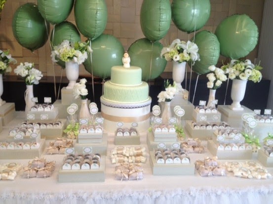 No batizado, a decoração Provençal ainda é o Top e em tons pasteis. O branco total e o branco com dourado ainda é o preferido. Os Anjos provençais estão, cada vez mais, fazendo parte da decoração nas mesas, nos doces e Bolos. Mas cuidado: quem está sendo batizado é o (a) seu filho (a).... e não os Anjos, devido ao excesso deles na decoração da mesa e nos doces.