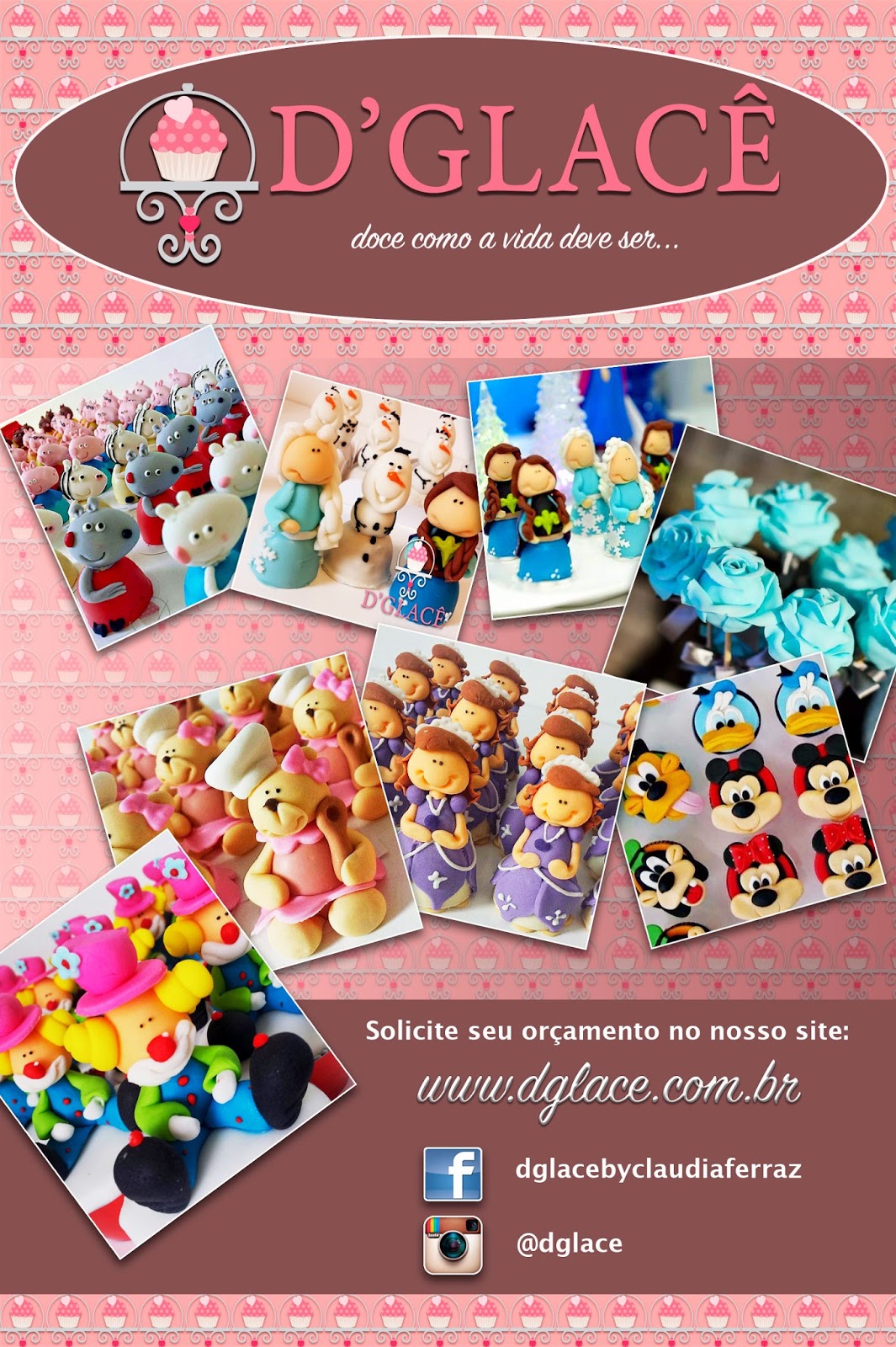 Isso mesmo, pelo fim... Depois de tudo ter sido entregue à cliente, e depois da festa ter ocorrido às mil e uma maravilhas, com várias fotos lindas da Decoradora Tacila Gouveia no seu Instagram (https://instagram.com/tacilagouveia). E eis que vejo um post no Instagram de "Um Bocadinho de Ideias" (https://instagram.com/umbocadinhodeideias), com um slideshow das fotos da festa, relatando os fornecedores e a D´Glacê estava lá. Show!!! Orgulho total!